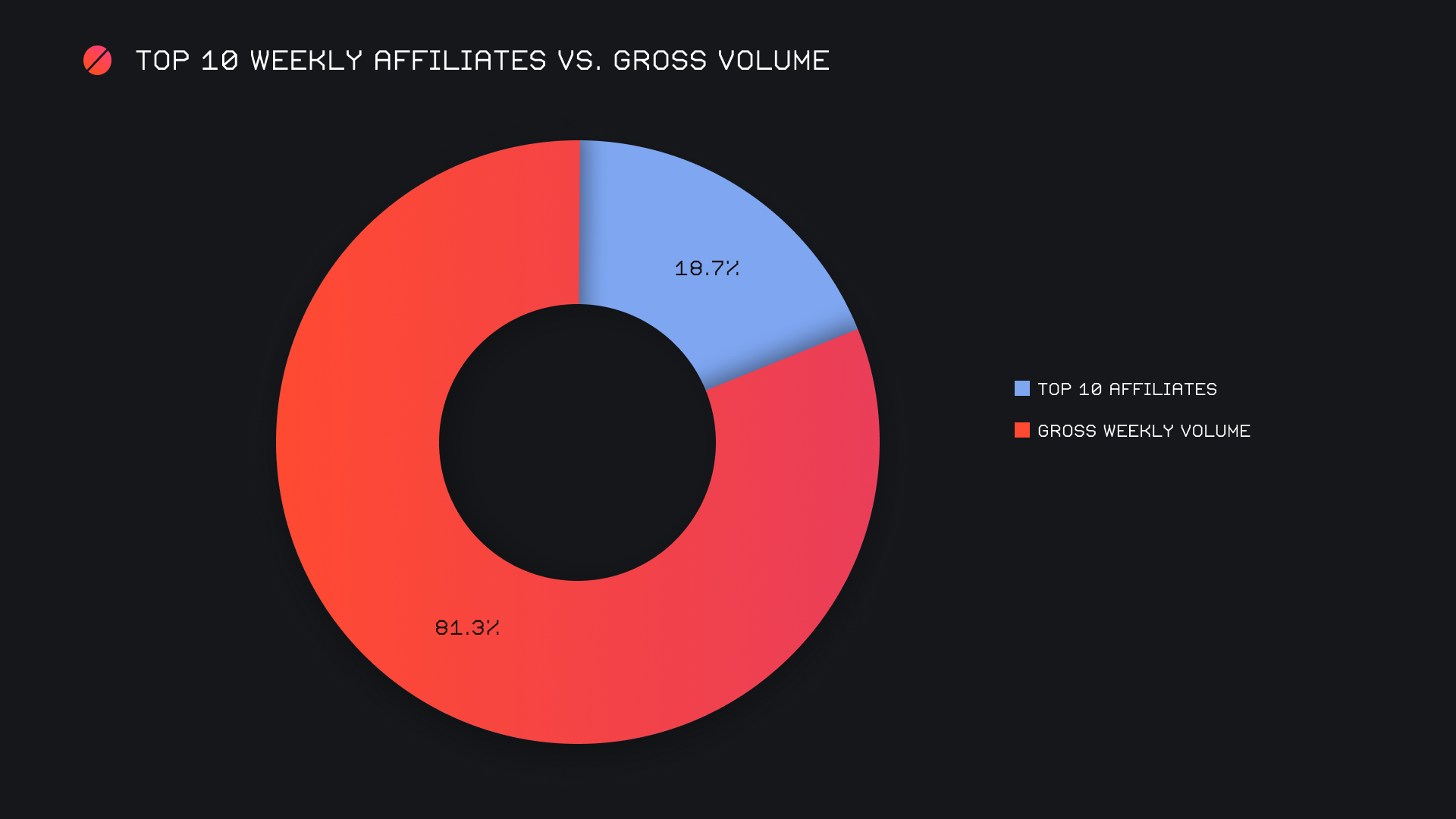 However, when considering the overall decline in volume, our top affiliates held their own. Our top 10 affiliates represented 18.7% of our weekly volume, a minor increase of 0.8% from last week’s proportion.