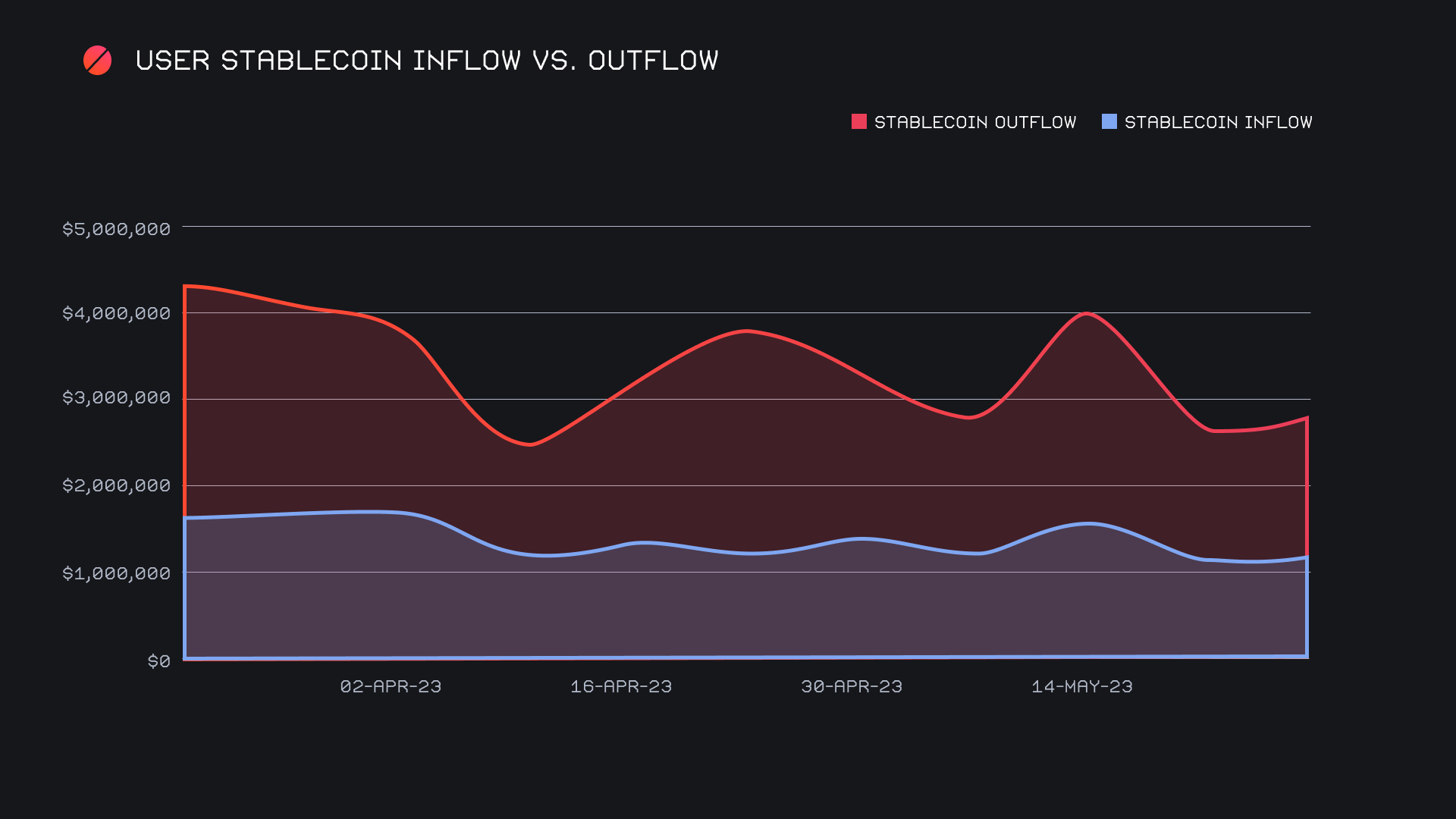 BTC/USDT (ERC-20) remained the most popular pair, despite the rather lackluster volume of $548k, a sum nearly 65% lower than that achieved by the same pair just 5 weeks ago. This pair also contributed to the ongoing trend of general stablecoin flow, with outflow outweighing inflow. SideShift settled ~$1.7m of stablecoins to users this week, as compared to receiving a total of ~$1.2m. A net outflow of approximately $500k was largely due to the high continued demand of USDT on Ethereum by users, much of which comes from integrations.