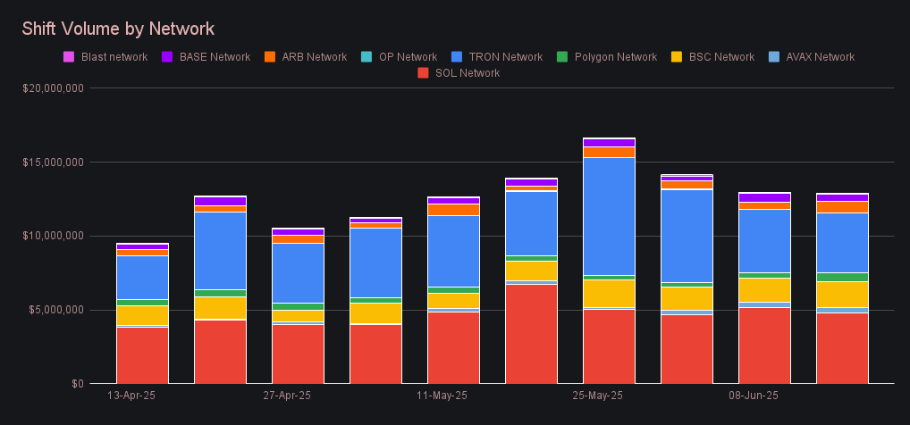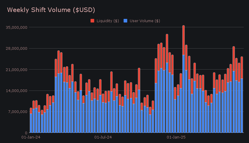 - SideShift processed $25.2m (+8.4%) and 10,891 shifts (+4.7%) – our second-highest volume in 5 months and most shifts since March.