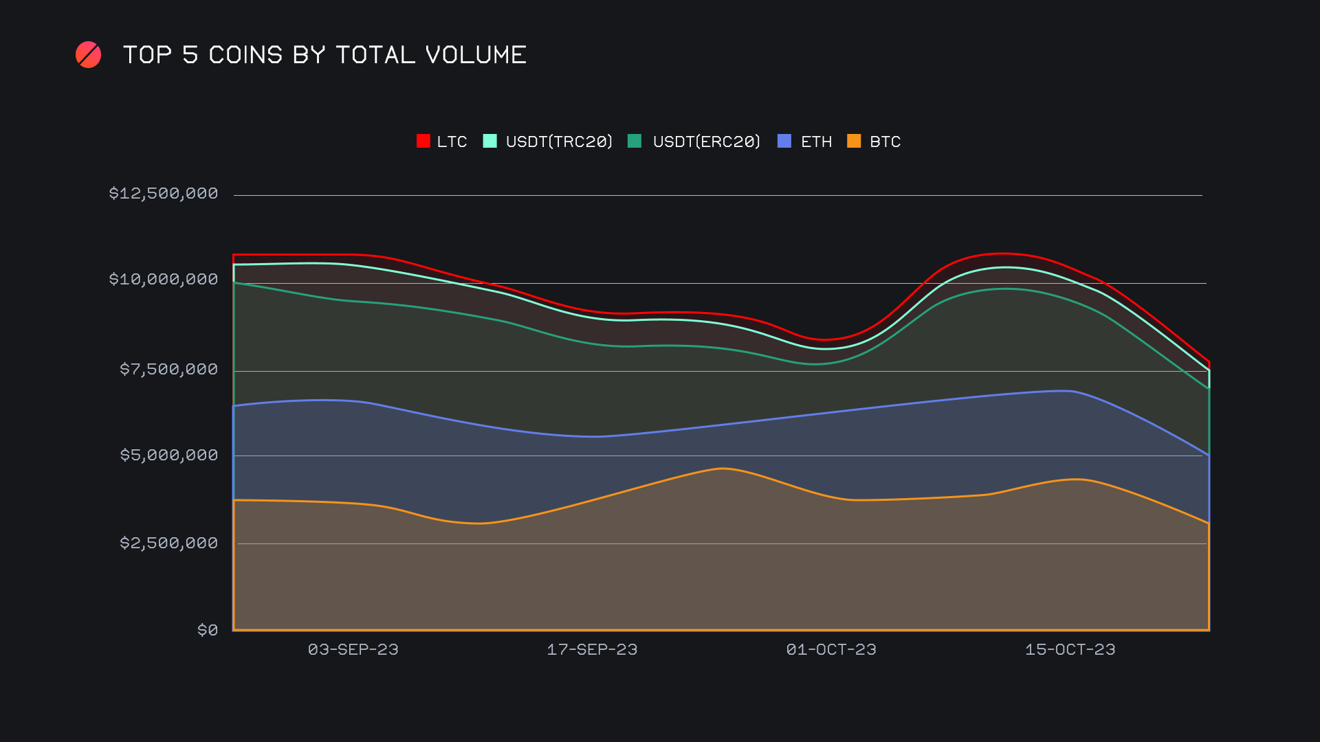 SideShift had a fairly slow week, ending the period with a gross volume of $4.6m (-35.2%) alongside a shift count of 5,413 (-6.8%). As was the case in the previous report, our integrations continued to perform rather steady this week, indicating that volume fluctuations mainly derived from shifts taking place directly on the site. Volume was extremely quiet leading up to the premature ETF approval announcement, at which point we also noted a spike in volume. This resulted in our busiest day of the week, albeit, at just $1m. It is no surprise that the majority of this volume was centered around BTC. However, it should be pointed out that it was not an overwhelming percentage of buying that took place, but rather an even split of BTC buys and sells on October 16th, 2023. Together, these weekly figures combined to produce daily averages of $652k on 773 shifts. When denoted in BTC, our weekly volume amounted to 167.28 BTC (-34.2%).