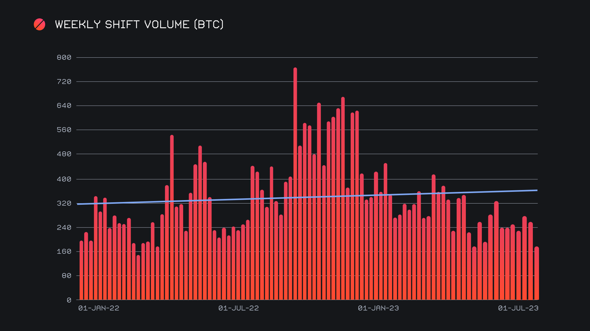 Meanwhile, user settlements of USDT (ERC-20) sat very close behind to BTC with $920k, something which has not changed in a long while. This is due to a steady stream of USDT (ERC-20) demand continually coming from our top integrations, which has been ongoing since nearly the beginning of the year. The BTC / USDT (ERC-20) pair prevailed as the most popular for users once again this week, with $730k in shift volume.