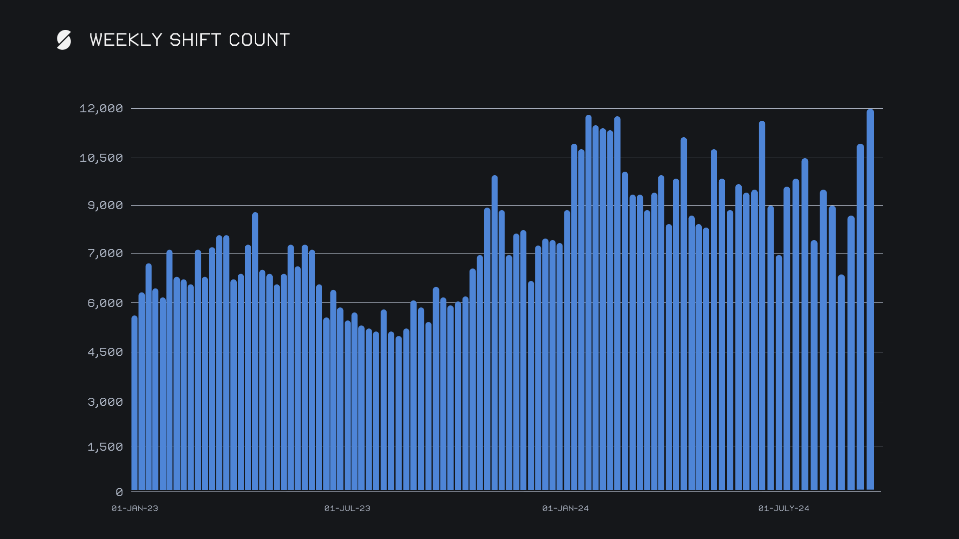 SideShift’s gross weekly shift count also set a new benchmark, surpassing 12,000 shifts for the first time and finishing the period with a final count of 12,058. This was a +10.7% increase from the previous week, and sat +29% above our YTD running average. This milestone reflects increased user activity and interest across a diverse range of coins amid a booming market, highlighted by top-performing user pairs such as ETH/SOL, which generated $1.92m, and the consistently popular BTC/ETH with $1.43m.