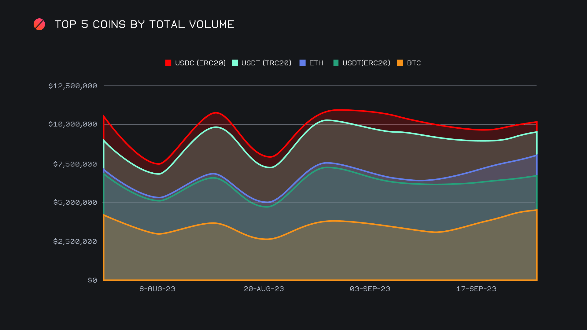 Meanwhile, ETH has now declined for 4 straight weeks, this week dipping 22.6% for a fourth placed finish with $1.4m. This comes after extremely strong performances in August, which saw it closing in on our top coin.
