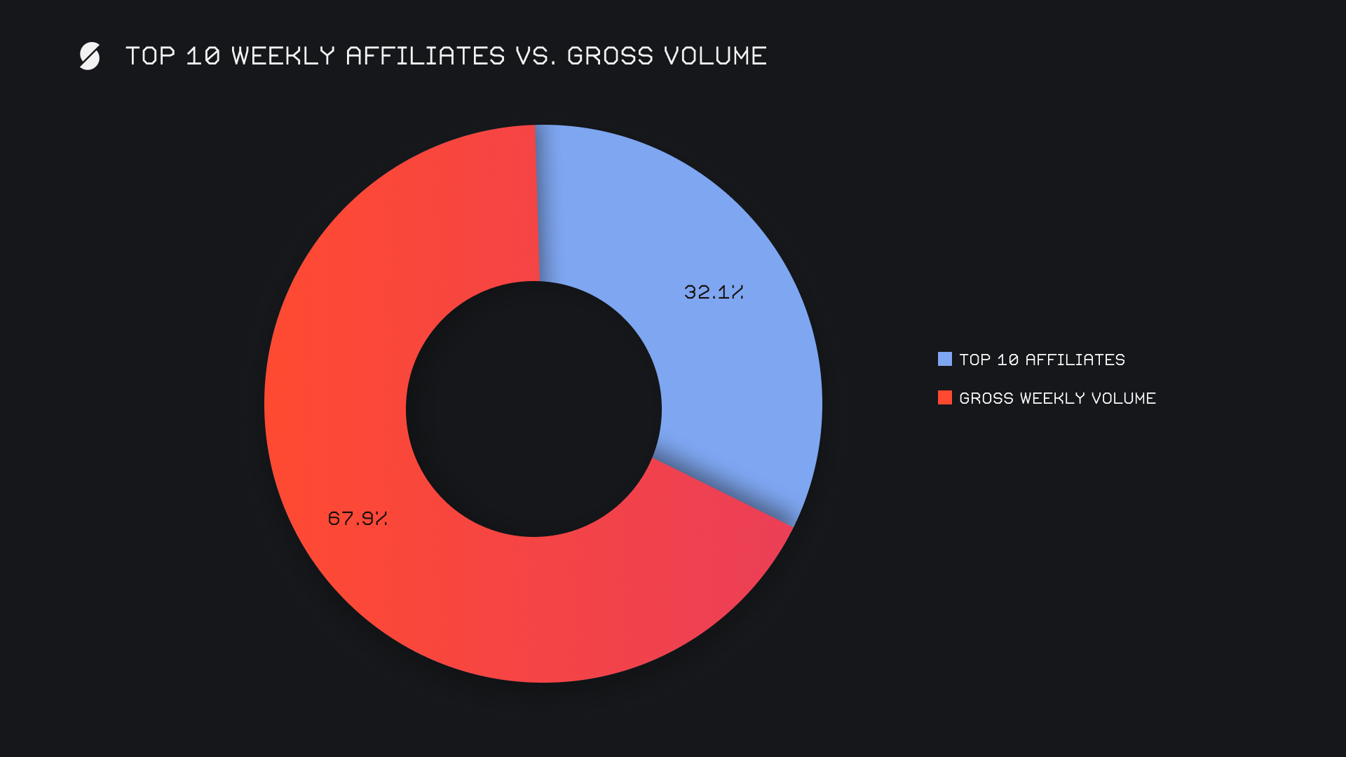 Together, these top affiliates accounted for 32.1% of our total weekly volume, +3.3% higher than last week’s proportion.
