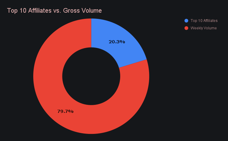 All together, our top affiliates contributed 20.27% of total volume, up +1.2% from the week prior.
