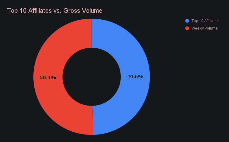 All together, our top affiliates combined to account for 49.6% of our shift volume, a -1.1% change from last week.