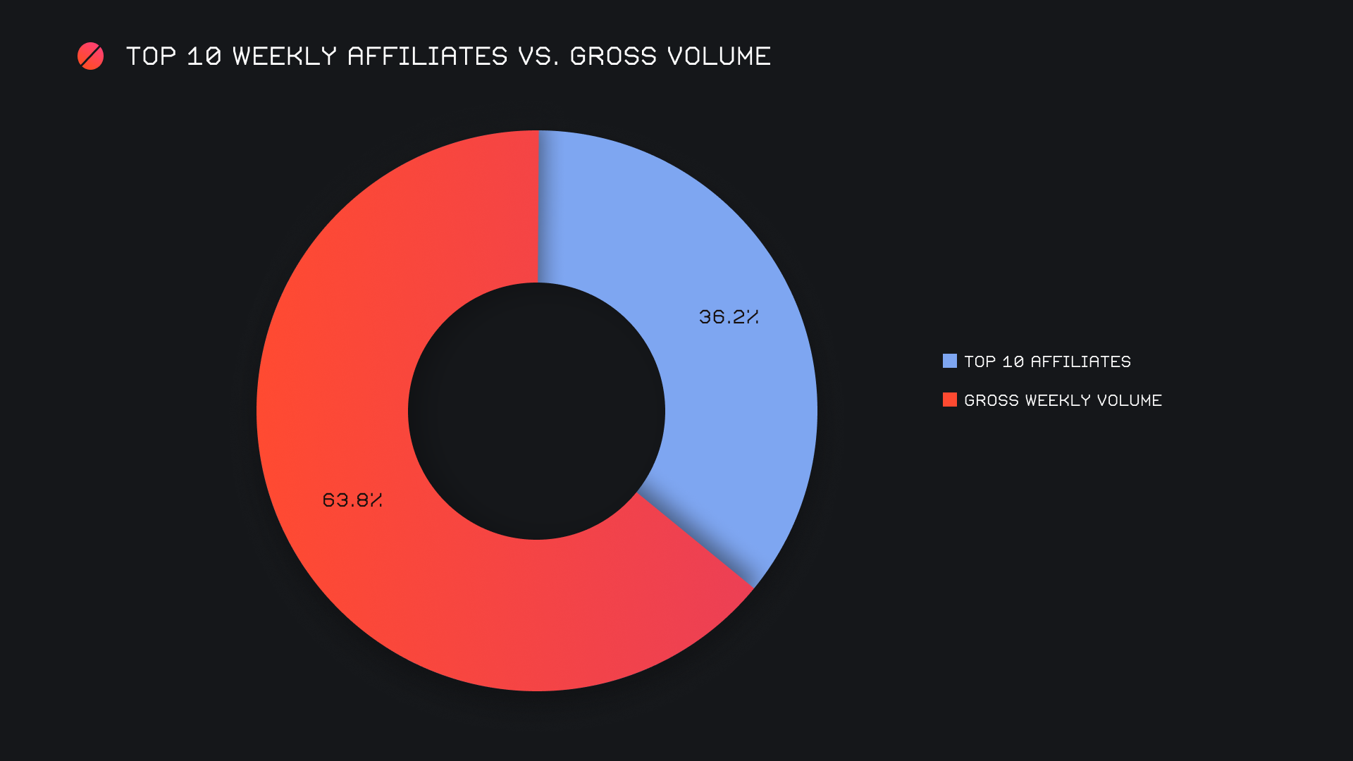All together, our top affiliates accounted for 36.2% of our weekly volume, 5.7% higher than last week’s proportion.