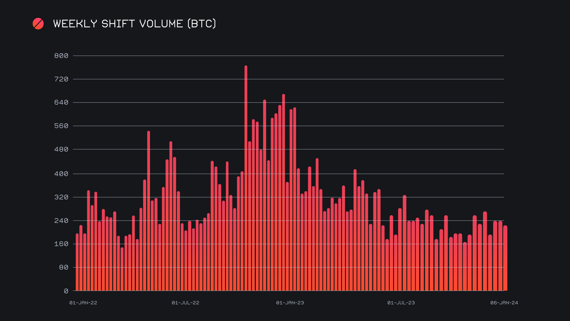 SideShift had a decent week, although also noting slight declines from the strong performances we’ve had to begin the year. We ended the period with a gross volume of $9.1m (-14.9%) alongside a shift count of 6,659 (-18.7%), which marks the first time shift count has dropped below the 7,000 mark in the past 8 weeks. This lower number of shifts was very evenly spread across coins, with only 1 out of our top 15 coins seeing an increase in this metric (USDC on Avalanche). This was contradictory to SideShift’s volume, which was far more concentrated among a select few top coins that proved to be responsible for the decrease. Together, these figures combined to produce daily averages of $1.3m on 951 shifts. When denoted in BTC, our weekly volume amounted to 220.17 BTC (-8.6%), a less dramatic reduction as compared to USD, due to the BTC’s price falling throughout the week.