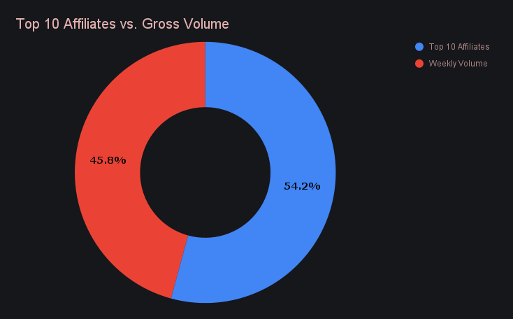 Together, our top affiliates accounted for 54.2% of total weekly volume, up +3.6% from the prior week.