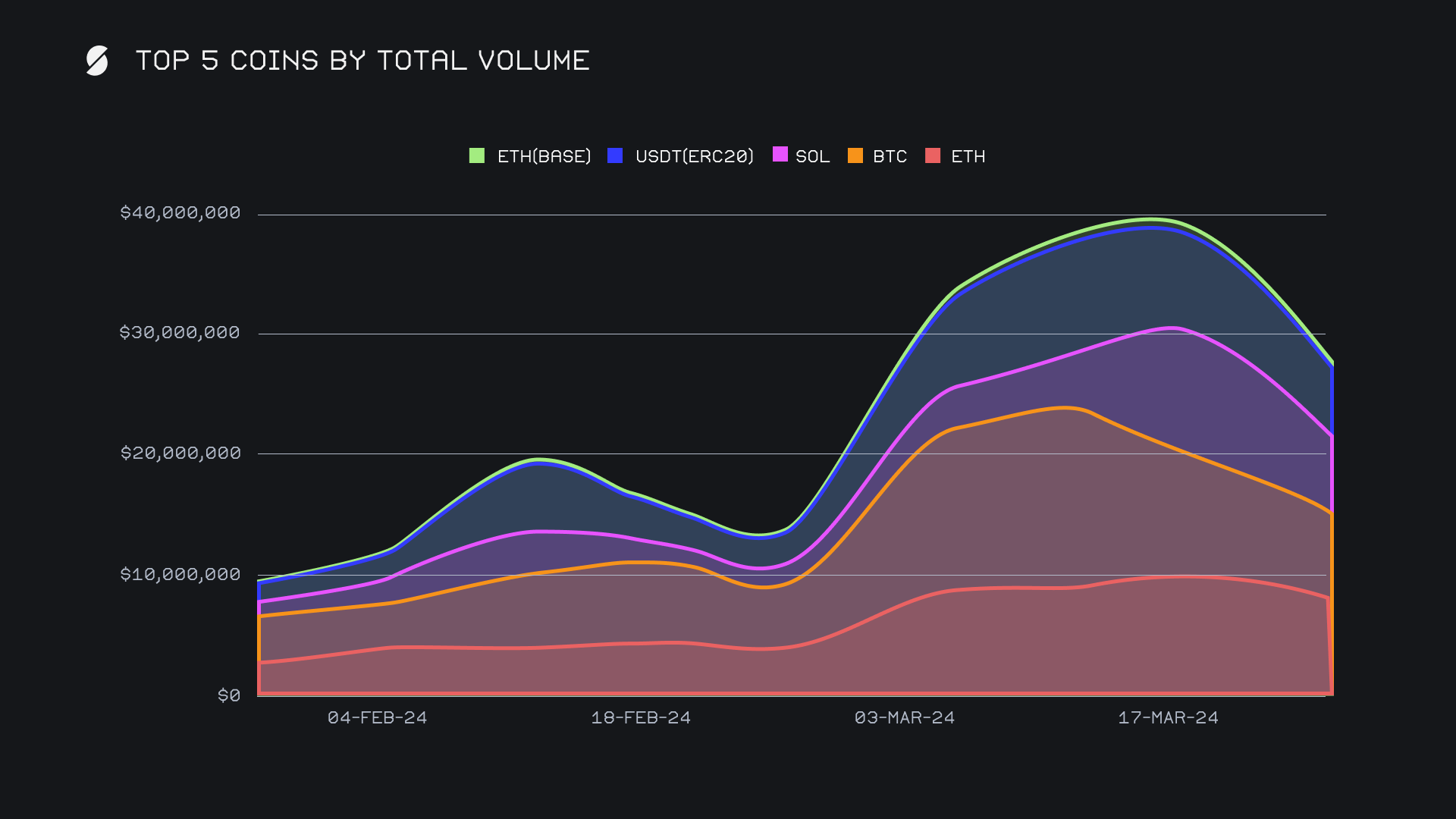 Following a brief dip last week, the total crypto market cap climbed back to $2.8 trillion and has its sights set on all time highs. BTC followed the same trend and rose to regain the $70k level, after falling to touch near $61k on March 20th, 2024. Memecoins continue to be a driving narrative across the market and L2s such as Base have exemplified this in recent weeks with its general network activity surging to new highs.