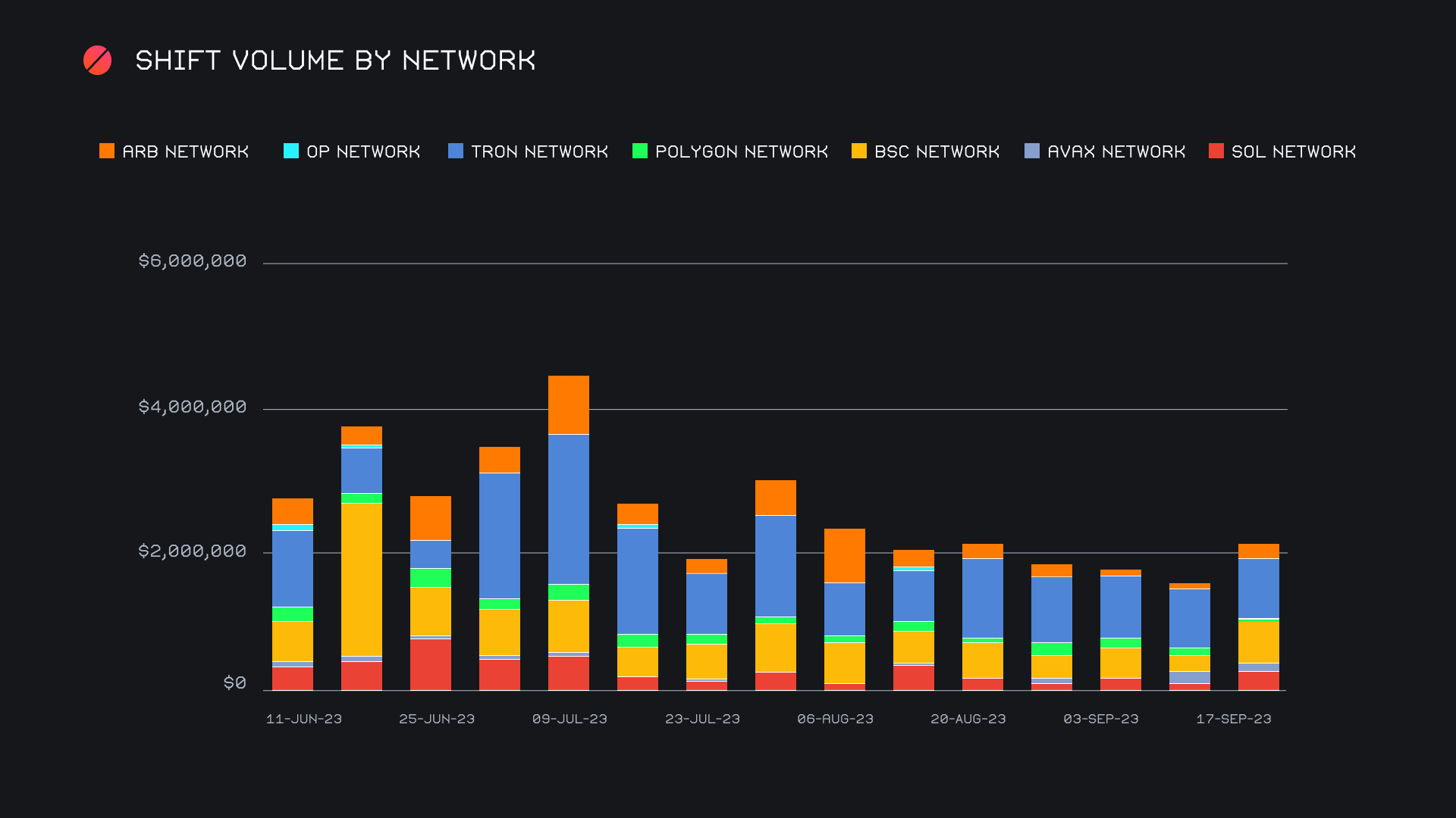 The Tron network remained at the top of the group despite being one of the few to witness its total volume decline. With that being said, it continues to be our most steady performer, which may not come as a shock when you consider the fact that it has the highest TVL among alternate networks listed on SideShift. It rounded off the period down 4.1% for a gross $789k to lead all networks.
