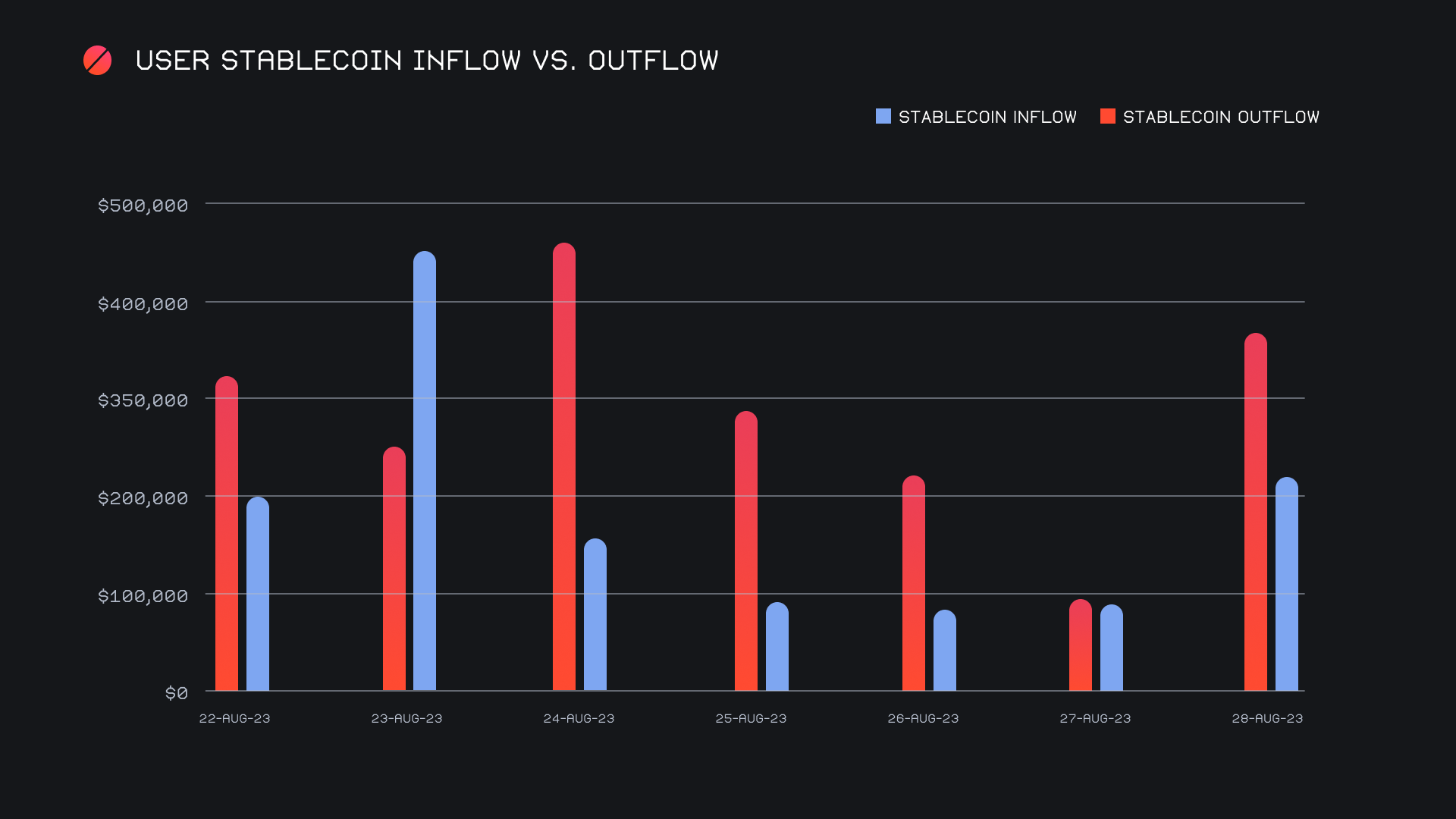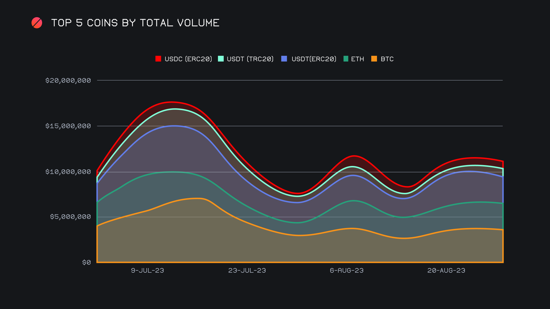 As we continue to track and observe stablecoin flows on SideShift, it is noteworthy to compare how it aligns with general market movement. As outlined below, the surge in settlements on August 24th, 2023 came immediately following the only positive change in BTC’s price throughout the week. This is likely an indication of fearful users, and an attempt to try to extract maximum value from the risk-on assets they are holding. With that being said, stablecoin settlements did fall 15% for a combined $2.03m in the wake of last week’s surge. Instead, it was stablecoin deposits which saw an increase (+7.9% for $1.3m), and a varied one at that. Whereas USDT (ERC-20) was the focal point of settlements, the same could not be said for deposits. It did remain our most deposited stablecoin with $464k (-33.9%), but others such as USDT (TRC-20), USDC (ERC-20), and USDT (BSC) were not far behind. They had respective deposit volumes of $349k, $283k, and $134k, and all more than doubled in deposit volume when compared to the previous week.