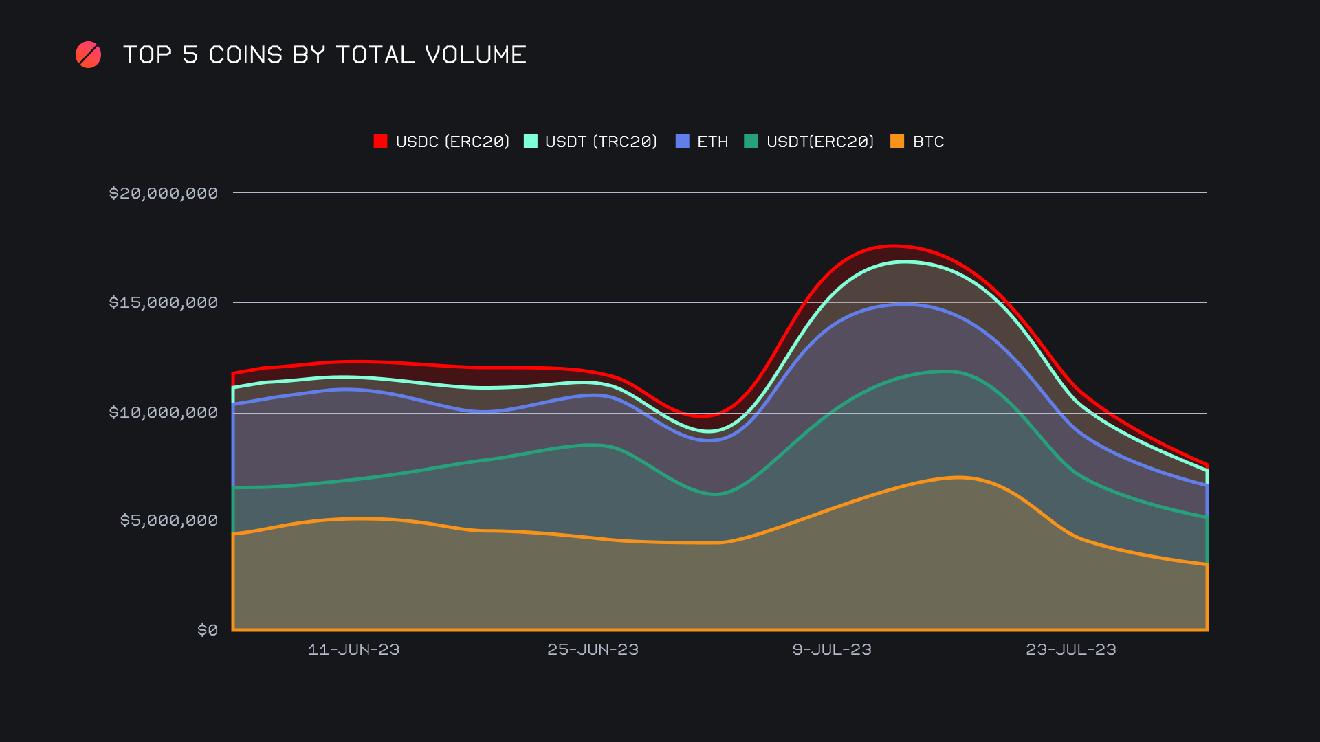 This rise in BTC buying also coincided with a decrease of user stablecoin settlements. With a combined sum of just $1.5m, cumulative stablecoin settlements dipped to the lowest levels seen since early April, 2023. The biggest changes here stemmed from a lack of demand for USDT (TRC-20), which fell 61.5% with $194k in volume for the week, and USDC (ERC-20), which fell an even more dramatic 67.3% to finish with just $89k in user settlements. These two are much more turbulent with wide variances, while our most popular USDT (ERC-20) tends to be the more stable of the group. Even still, USDT (ERC-20) settlements fell 20.5% and ended the week with ~$1.1m.