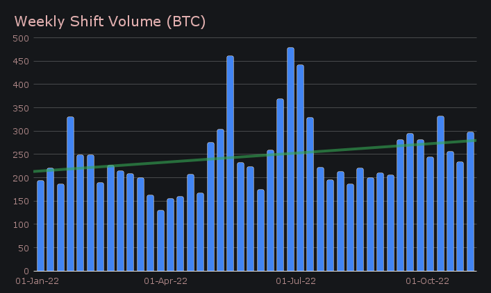 This week saw the overall market pop, following multiple months of consolidation. The market momentum was reflected on SideShift, as we recorded the second highest weekly volume observed in the past 4 months. SideShift finished the week netting $6.03m (+33.95%) - in BTC terms, this amounted to 296.7 BTC (+27.3%).