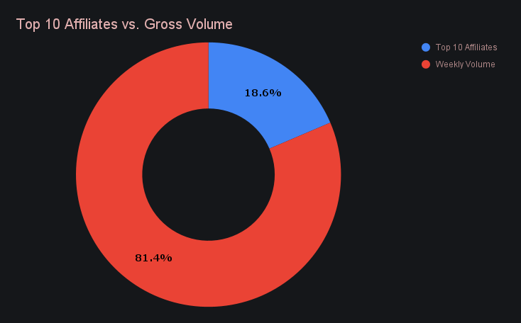 Together, the top affiliates accounted for 18.6% of total weekly volume, −6.9% from last week.