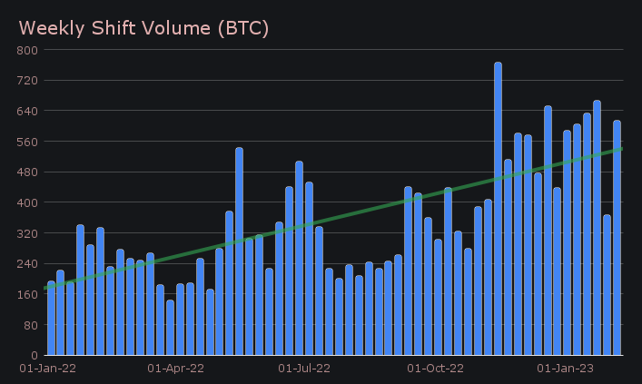 Following a slower week which aligned with Bitcoin’s mostly sideways price action, this week SideShift bounced back sharply and returned to territory which is pushing the boundaries of our strongest weeks recorded to date.
