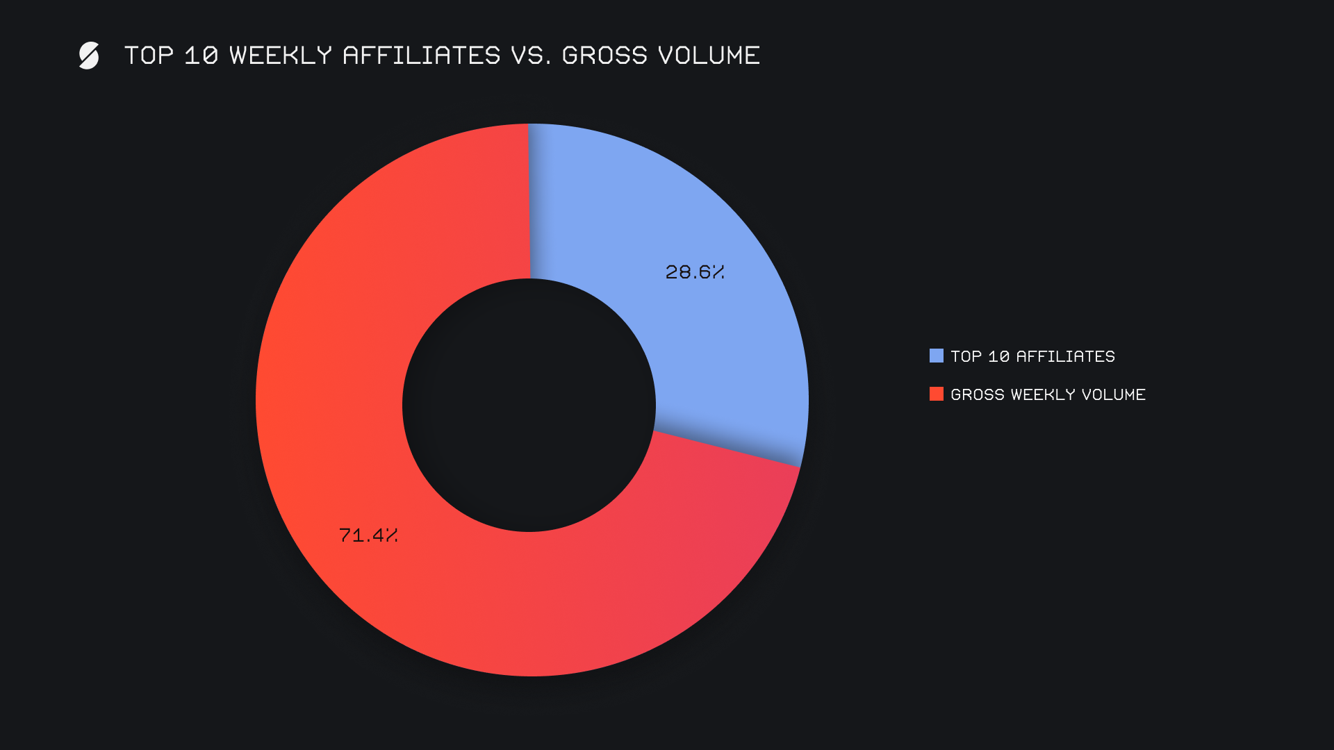 Our top affiliates showcased an extremely steady performance, contributing a combined $9.3m (-0.1%) in shift volume this week. Our first-placed affiliate held its position, closing the week with $3.6m (-5.2%), while our second-placed affiliate followed closely with $3.0m (-3.2%). The most notable performance came from our third-placed affiliate, which rebounded +45.6% to $1.7m alongside a dominant shift count of 1,508. Altogether, our top affiliates accounted for 28.6% of SideShift’s weekly volume, -4.5% lower than last week’s proportion, due to the overall increase in volume.
