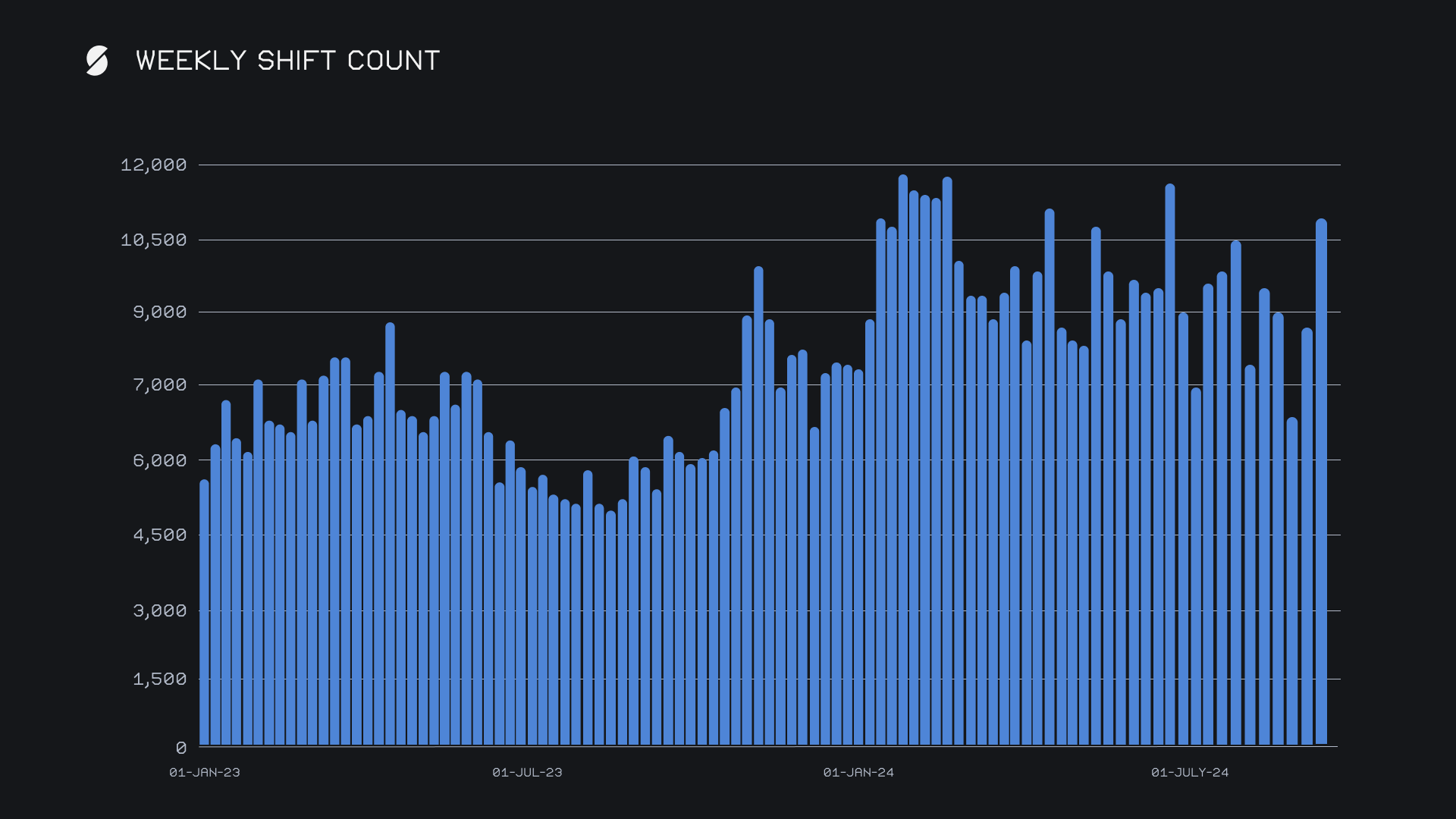 Our top affiliates had a standout performance, combining for a total volume of $6.6m, up +232% from last week's $2.0m. Our first-place affiliate maintained its lead, recording $2.9m, marking an impressive +264.8% increase. Our second-place affiliate also held its position and posted significant growth with $2.3m (+329.9%), leading the shift count among top affiliates as usual with 1,314 shifts (+96.7%). Third place saw a change this week, bringing in $464k (+154.8%) and highlighting shifting dynamics within the affiliate rankings.