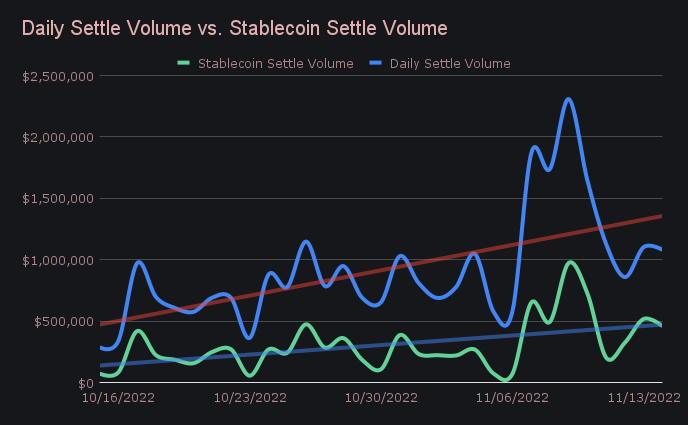 It should be mentioned here that overall stablecoin settle volume accounted for a record 37.1% of the total this week, a substantial ~10% jump from proportions seen throughout the past few months.