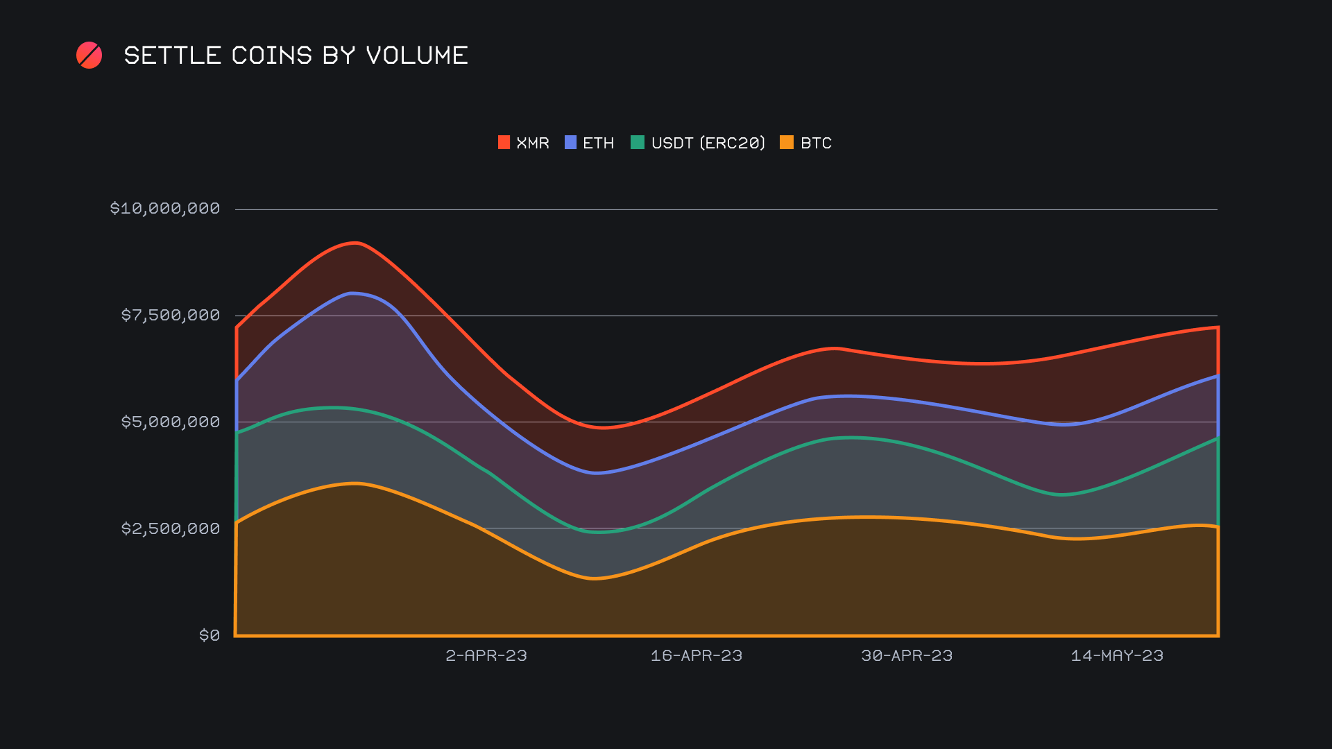 Directly related to this is perhaps the most interesting change of the week, a 90.4% spike in USDT (ERC-20) user settlements. This resulted in a settle volume of $1.61m, only just shy of BTC’s first placed $1.63m. Although going through ebbs and flows of their own, our top 4 settle coins have generally been trending up, after hitting what looks like a local low about one month ago.