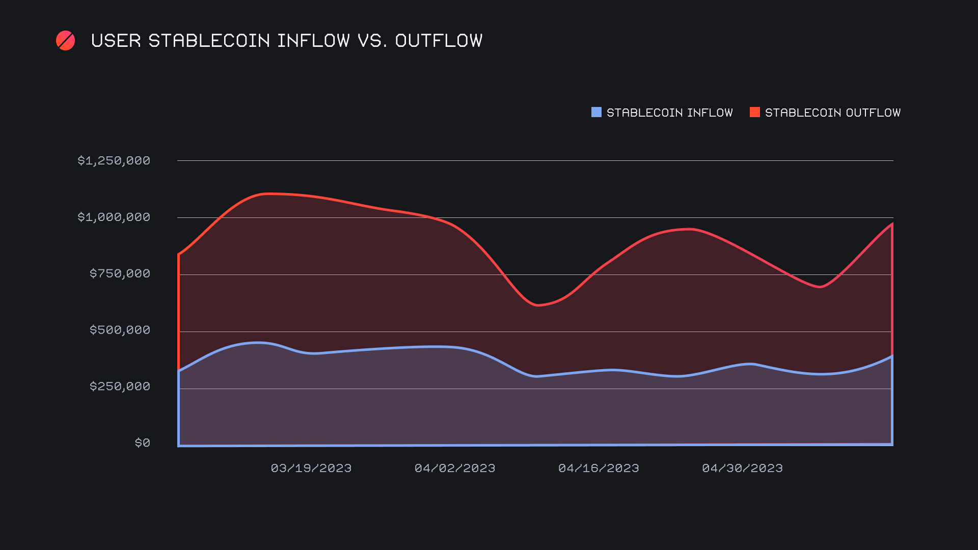 Although in particular USDT on Ethereum is storming its way to the top, stablecoins as a whole seemed to experience an increase in demand, with weekly stablecoin settlements rising 50% from last week for a combined $2.4m. As outlined in the chart below, while stablecoin inflow seems to remain quite steady, outflow fluctuates far more often. This week had a net flow of -$812k, meaning that our volume for stablecoin settlements exceeded user deposits by this amount. Since we began tracking this metric, outflow has trumped inflow. We will continue to monitor these changes, as stablecoin flows may serve as a solid gauge for general user sentiment.